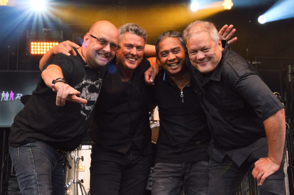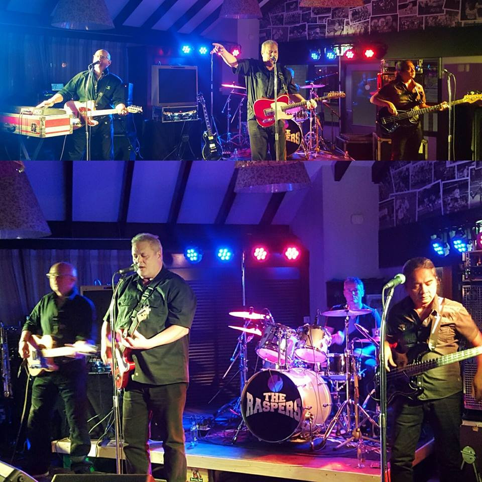 Gitaar, bas, drums, vier zangstemmen en een saxofonist (Mr. Showbizz!) die ook nog eens keyboard, percussie en gitaar speelt, maken The Raspers tot een compacte formatie met een groots geluid.